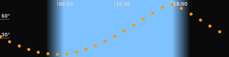 | Höchster Stand (Kulmination) | 17:55 Uhr (h = 83°) |