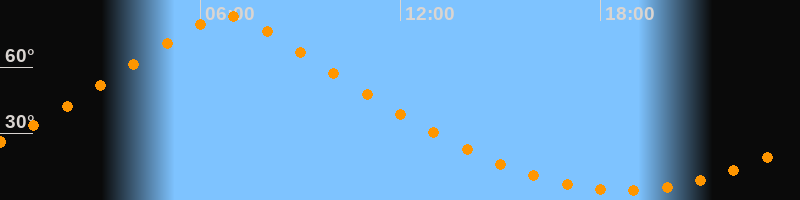 | Höchster Stand (Kulmination) | 06:47 Uhr (h = 83°) |