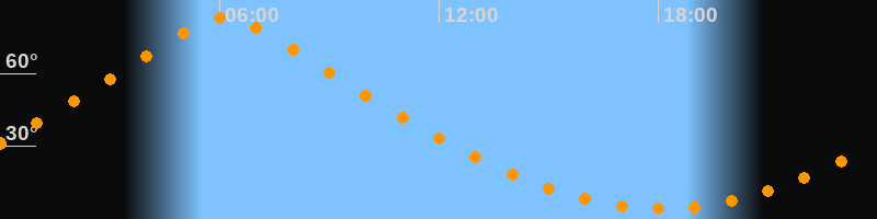 | Höchster Stand (Kulmination) | 06:08 Uhr (h = 83°) |