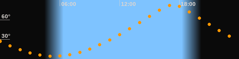 | Höchster Stand (Kulmination) | 17:21 Uhr (h = 83°) |