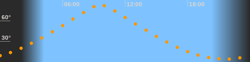 | Höchster Stand (Kulmination) | 09:37 Uhr (h = 83°) |