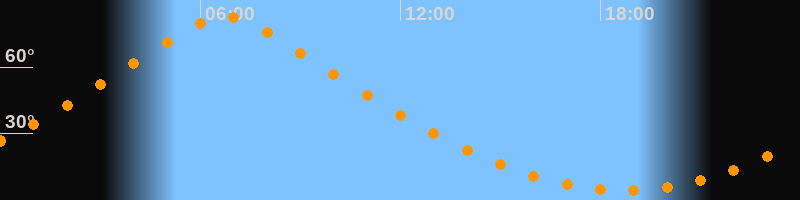 | Höchster Stand (Kulmination) | 06:44 Uhr (h = 83°) |