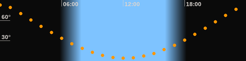 | Höchster Stand (Kulmination) | 00:07 Uhr (h = 83°) |
