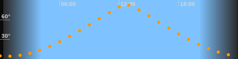 | Höchster Stand (Kulmination) | 12:43 Uhr (h = 83°) |