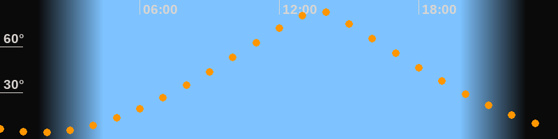 | Höchster Stand (Kulmination) | 13:39 Uhr (h = 83°) |