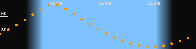 | Höchster Stand (Kulmination) | 06:34 Uhr (h = 83°) |