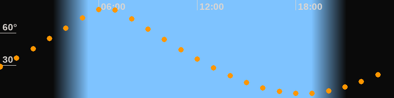 | Höchster Stand (Kulmination) | 06:26 Uhr (h = 83°) |