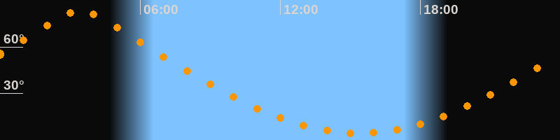 | Höchster Stand (Kulmination) | 03:25 Uhr (h = 83°) |