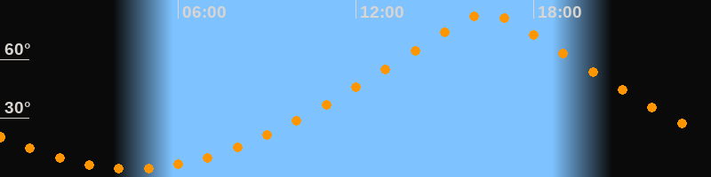 | Höchster Stand (Kulmination) | 16:25 Uhr (h = 83°) |