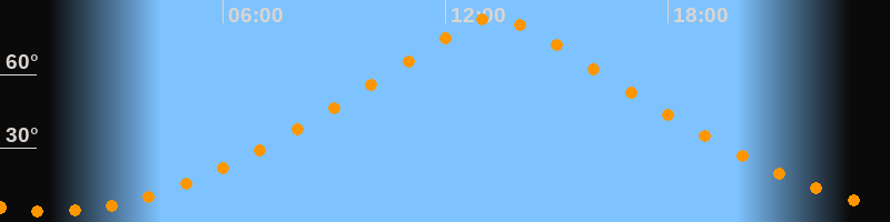 | Höchster Stand (Kulmination) | 13:20 Uhr (h = 83°) |