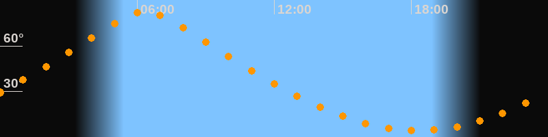 | Höchster Stand (Kulmination) | 06:20 Uhr (h = 83°) |