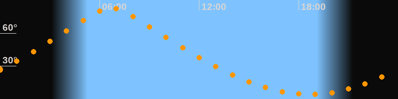 | Höchster Stand (Kulmination) | 06:41 Uhr (h = 83°) |