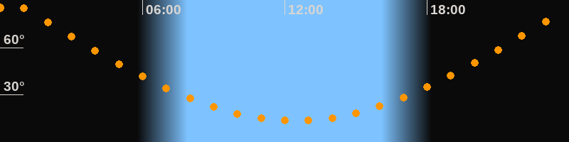 | Höchster Stand (Kulmination) | 00:25 Uhr (h = 87,9°) |
