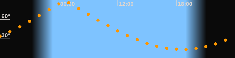 | Höchster Stand (Kulmination) | 06:36 Uhr (h = 87,9°) |