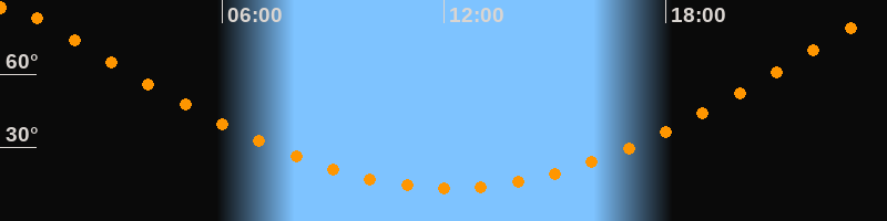 | Höchster Stand (Kulmination) | 00:11 Uhr (h = 87,9°) |