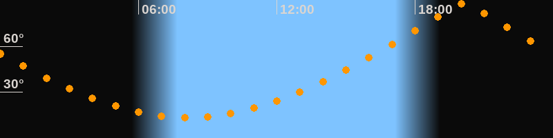 | Höchster Stand (Kulmination) | 20:07 Uhr (h = 87,9°) |