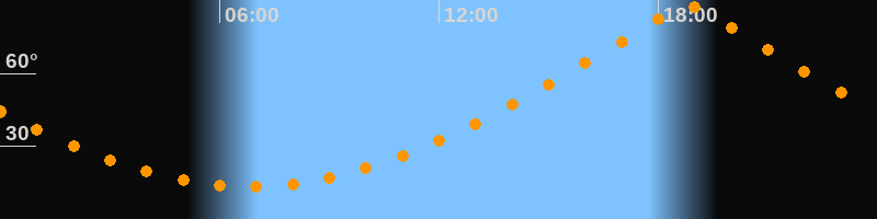 | Höchster Stand (Kulmination) | 18:48 Uhr (h = 87,9°) |