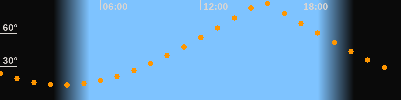 | Höchster Stand (Kulmination) | 15:43 Uhr (h = 87,9°) |