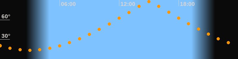 | Höchster Stand (Kulmination) | 15:00 Uhr (h = 87,9°) |