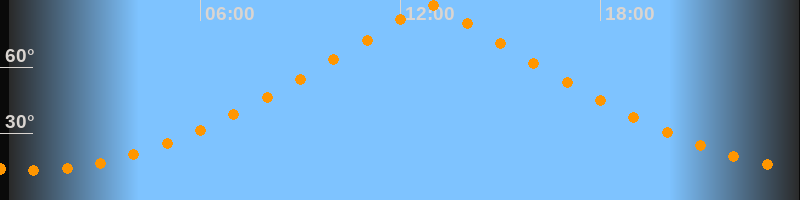 | Höchster Stand (Kulmination) | 12:54 Uhr (h = 87,9°) |