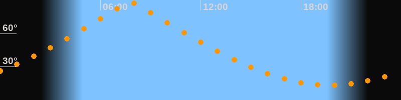 | Höchster Stand (Kulmination) | 07:48 Uhr (h = 87,9°) |