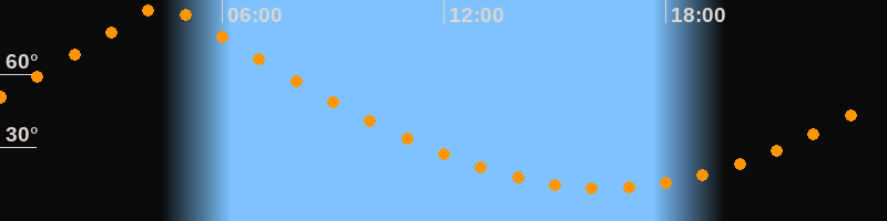 | Höchster Stand (Kulmination) | 04:23 Uhr (h = 87,9°) |