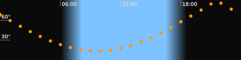 | Höchster Stand (Kulmination) | 21:34 Uhr (h = 87,9°) |
