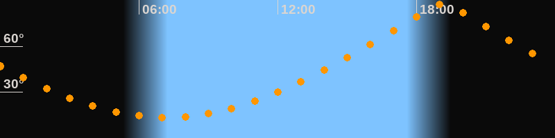 | Höchster Stand (Kulmination) | 19:09 Uhr (h = 87,9°) |