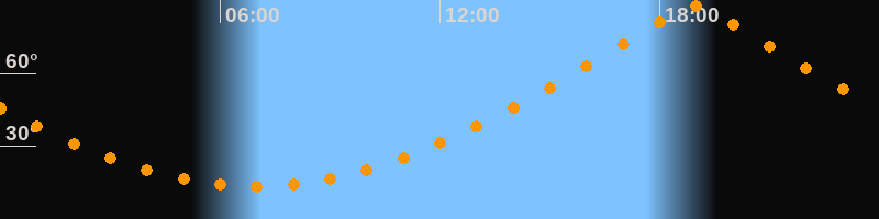 | Höchster Stand (Kulmination) | 18:57 Uhr (h = 87,9°) |