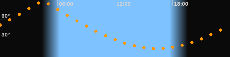 | Höchster Stand (Kulmination) | 04:24 Uhr (h = 87,9°) |