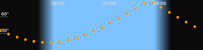 | Höchster Stand (Kulmination) | 17:35 Uhr (h = 87,9°) |