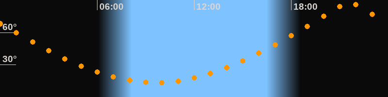| Höchster Stand (Kulmination) | 21:36 Uhr (h = 87,9°) |