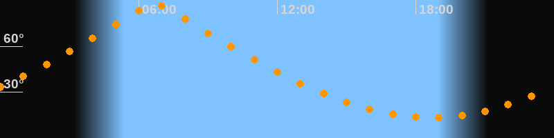 | Höchster Stand (Kulmination) | 06:41 Uhr (h = 87,9°) |