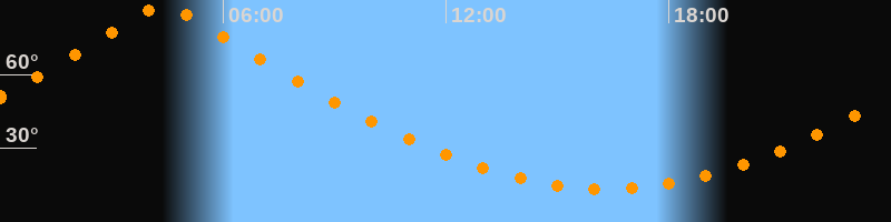 | Höchster Stand (Kulmination) | 04:23 Uhr (h = 87,9°) |
