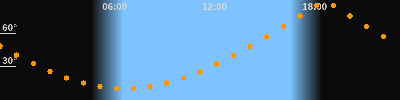 | Höchster Stand (Kulmination) | 19:30 Uhr (h = 88,8°) |