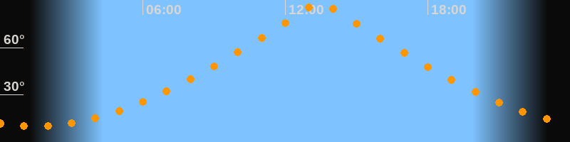 | Höchster Stand (Kulmination) | 13:28 Uhr (h = 88,8°) |