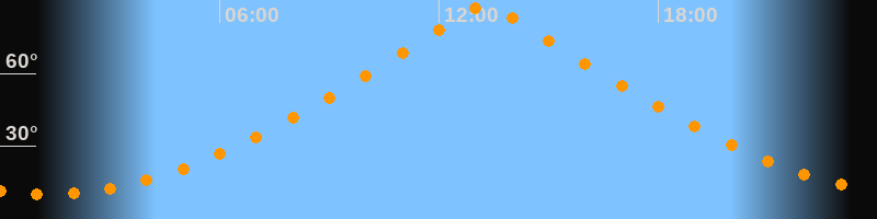 | Höchster Stand (Kulmination) | 13:16 Uhr (h = 88,8°) |