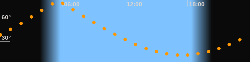| Höchster Stand (Kulmination) | 05:33 Uhr (h = 88,8°) |