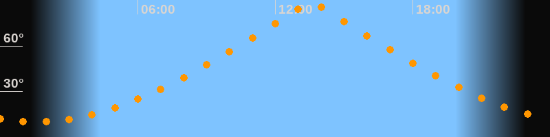 | Höchster Stand (Kulmination) | 13:34 Uhr (h = 88,8°) |