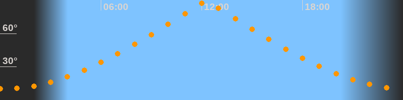 | Höchster Stand (Kulmination) | 12:15 Uhr (h = 88,8°) |