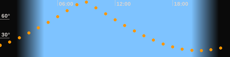 | Höchster Stand (Kulmination) | 08:43 Uhr (h = 88,8°) |