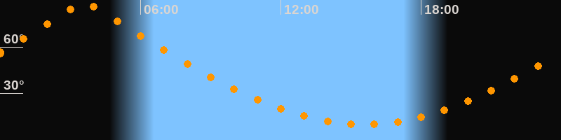 | Höchster Stand (Kulmination) | 03:36 Uhr (h = 88,8°) |