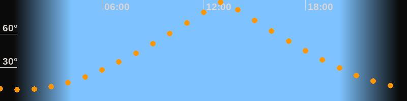 | Höchster Stand (Kulmination) | 13:07 Uhr (h = 88,8°) |