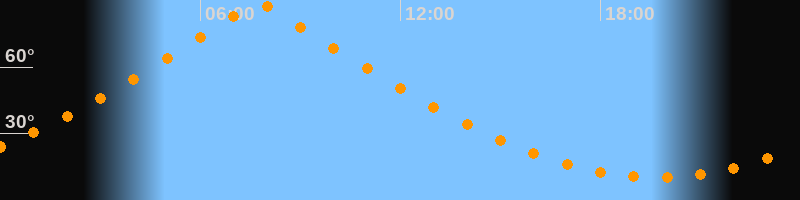 | Höchster Stand (Kulmination) | 07:45 Uhr (h = 88,8°) |