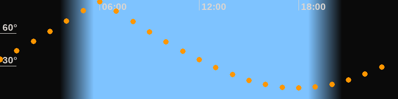 | Höchster Stand (Kulmination) | 05:59 Uhr (h = 88,8°) |