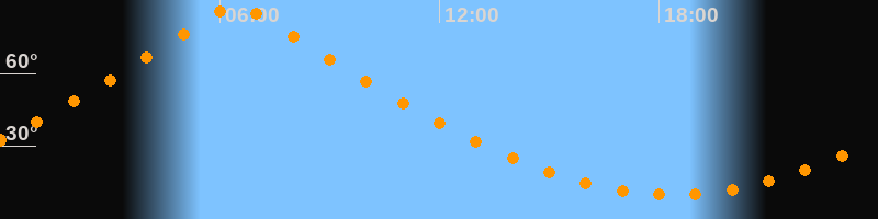 | Höchster Stand (Kulmination) | 06:27 Uhr (h = 88,8°) |