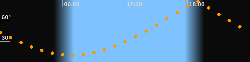 | Höchster Stand (Kulmination) | 18:51 Uhr (h = 88,8°) |
