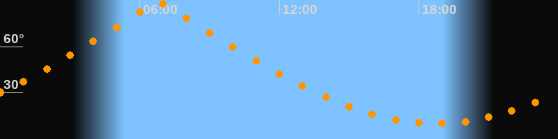 | Höchster Stand (Kulmination) | 06:48 Uhr (h = 88,8°) |