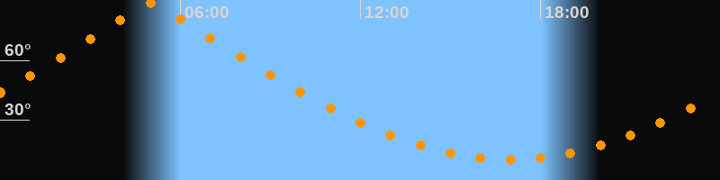 | Höchster Stand (Kulmination) | 05:01 Uhr (h = 88,8°) |