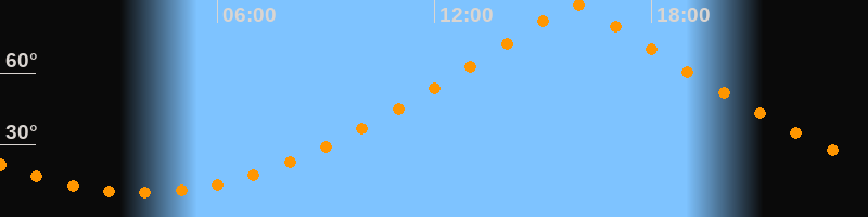 | Höchster Stand (Kulmination) | 15:53 Uhr (h = 88,8°) |